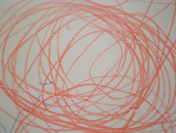 媽媽發現, 快要15個月大的安安可以畫出直線啦!