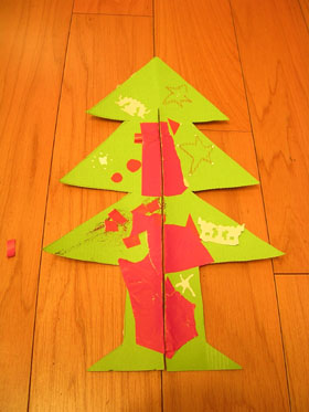 1. 裁成兩張同尺寸大小高度都一樣的平面聖誕樹.