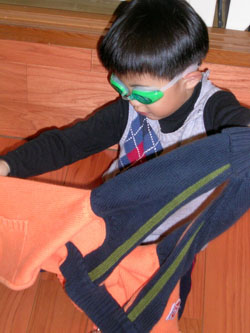 這兩週, 媽媽嚴格要求Julian, 放學後回到家, 要把外套收拾好. 所謂收拾好就是: