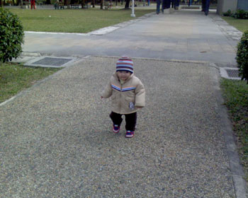 榮星公園出現很像小北極熊的一枚小小人... 走路走的還算不錯, 很努力在保持平衡!